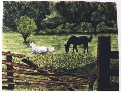 PennsylvaniaHorseMeadow Watercolor 8" x 10" April 1999 |